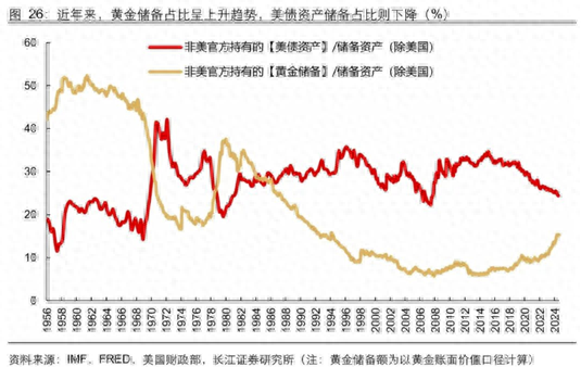 长江证券近日撰文认为,央行增持黄金反映的是国际社会对美元的信任度正在下降,根本原因是美国自身债务高企透支美元信用,叠加全球秩序面临重构推动央行购金以规避地缘政治风险,特别是新兴经济体出于发展、安全等因素考虑,多会选择减持美元资产、增持黄金。