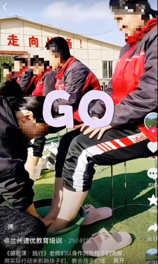 让人怀疑,他们是想通过老师给学生洗脚,来传递用爱来感化学生的教育模式,以区别那些搞军事化管理的培训机构,从而让学生家长放心,以此达到宣传招生的目的。